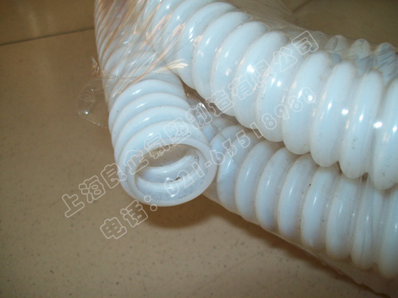聚四氟乙烯波紋管(四氟波紋管或鐵氟龍波紋管)是由特殊的吹脹成型制成,將聚四氟乙烯管材在一定模具中加熱到一定溫度,管內給予一定的內壓,使管材橫向擴大(吹脹)然后冷卻定型而制得。